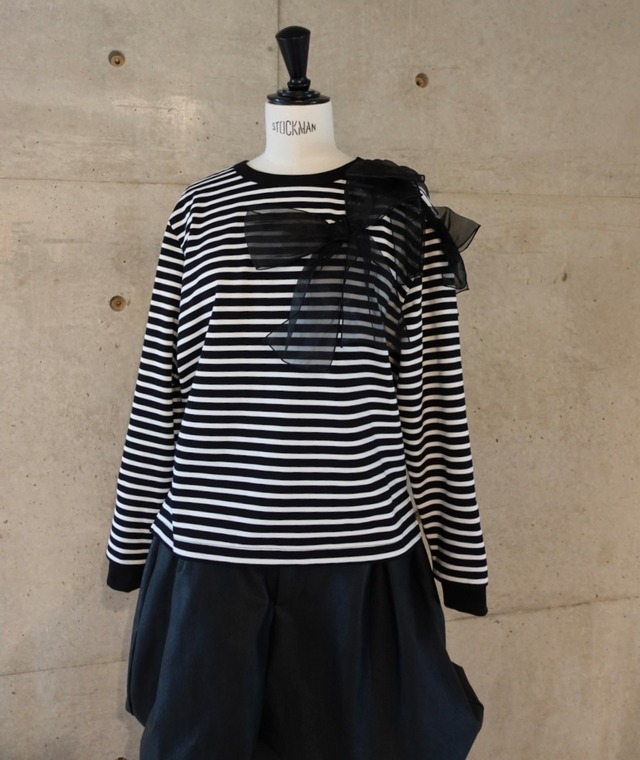 Long Sleeve Ribbon T-shirts/Black&White Border(size:36、38) Cotton100%の柔らかな着心地に Race Ribbonをプラスした上品で可愛いLong Sleeve T-shirts 首元、袖をリブにすることで着やすい一枚に仕上げました 立体的なRibbonが華やかさを演出してくれる他にはないアイテムです 《素材》 ・コットン100%(レース:ポリエステル100%) 《サイズ》 ・36:前着丈 59.5cm、後着丈 63cm(前後差+3.5cm)/身幅 52.5cm/肩幅 44.5cm/袖丈 55.5cm ・36:前着丈 60.5cm、後着丈 64cm(前後差+3.5cm)/身幅 54cm/肩幅 45.5cm/袖丈 57.5cm 《原産国》 ・日本 ◯お取り扱いのご注意 この素材は摩擦(特に湿った状態での摩擦)や、汗や雨等で濡れた場合は他の衣服や鞄等に色移り、色落ちすることがありますのでご注意くださいませ。 ※詳細につきましては、商品縫込みの品質表示をご確認お願い申し上げます。 万が一、色移り等が生じた場合でも一切の責任は負えませんので予めご了承くださいませ。 〇発送について ご入金確認後、2~4日営業日内(土日祝を除く)での発送となります。ご予約の商品をご購入される際は発送開始日をご確認の上、お手続きくださいませ。 配達に関するリクエスト(日時指定、置き配指定など)は出荷後にメールにてお届けしております「お問い合わせ番号」を元に佐川急便様までご連絡をお願い申し上げます。 〇キャンセルについて 大変申し訳ございませんがお客様都合によるキャンセル・変更はお受け致しておりません。 十分にご検討いただいた上でお買い求めくださいませ。 〇納品書について 無駄な廃棄物を出さない為に、納品書の同封をしておりません。納品書、領収証が必要な場合はご注文時に備考欄にご入力くださいませ。 <その他、ご注意とお願い> 必ず商品ページ上部にございます、「information」を一読いただきご理解の上でご購入をお願い申し上げます。 https://jnhearts.official.ec/items/69539167 J.N.Hearts