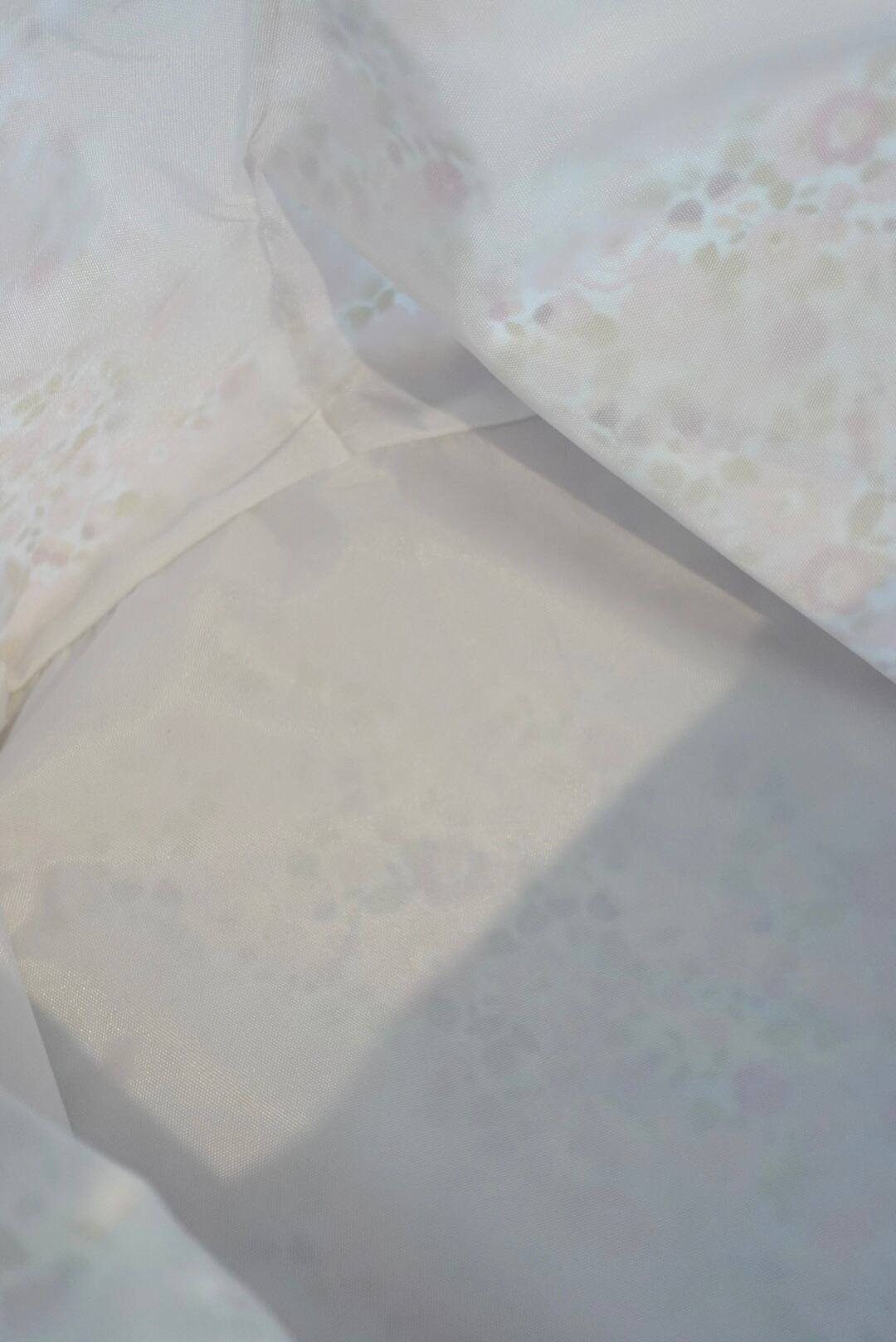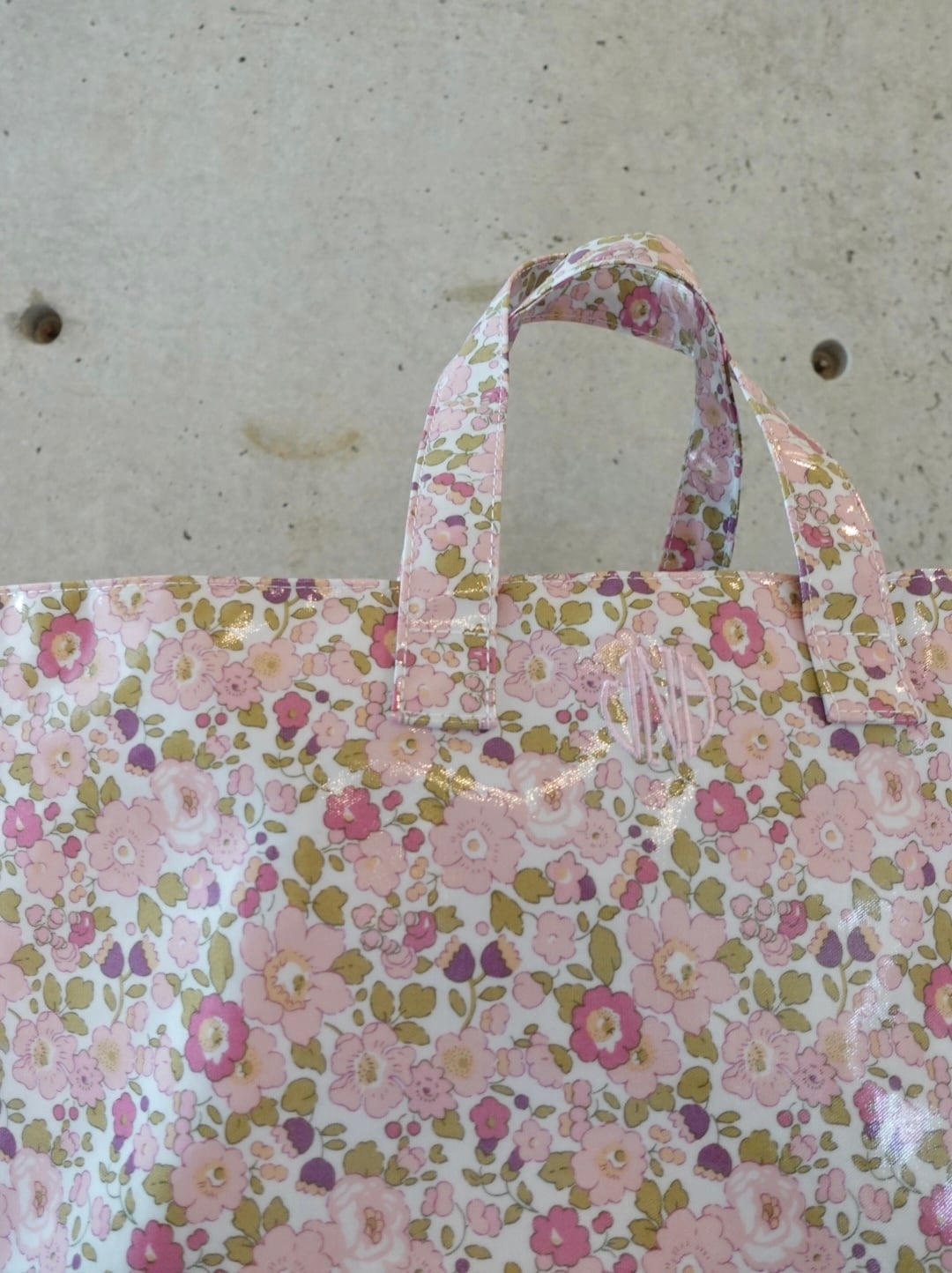 淡いお色味の花柄にPVC加工を施し、撥水加工のある裏地をつけております