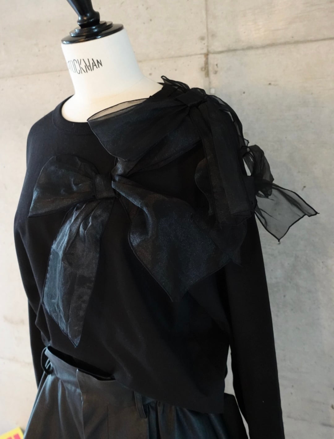 Long Sleeve Ribbon T-shirts/Black(size:36、38)