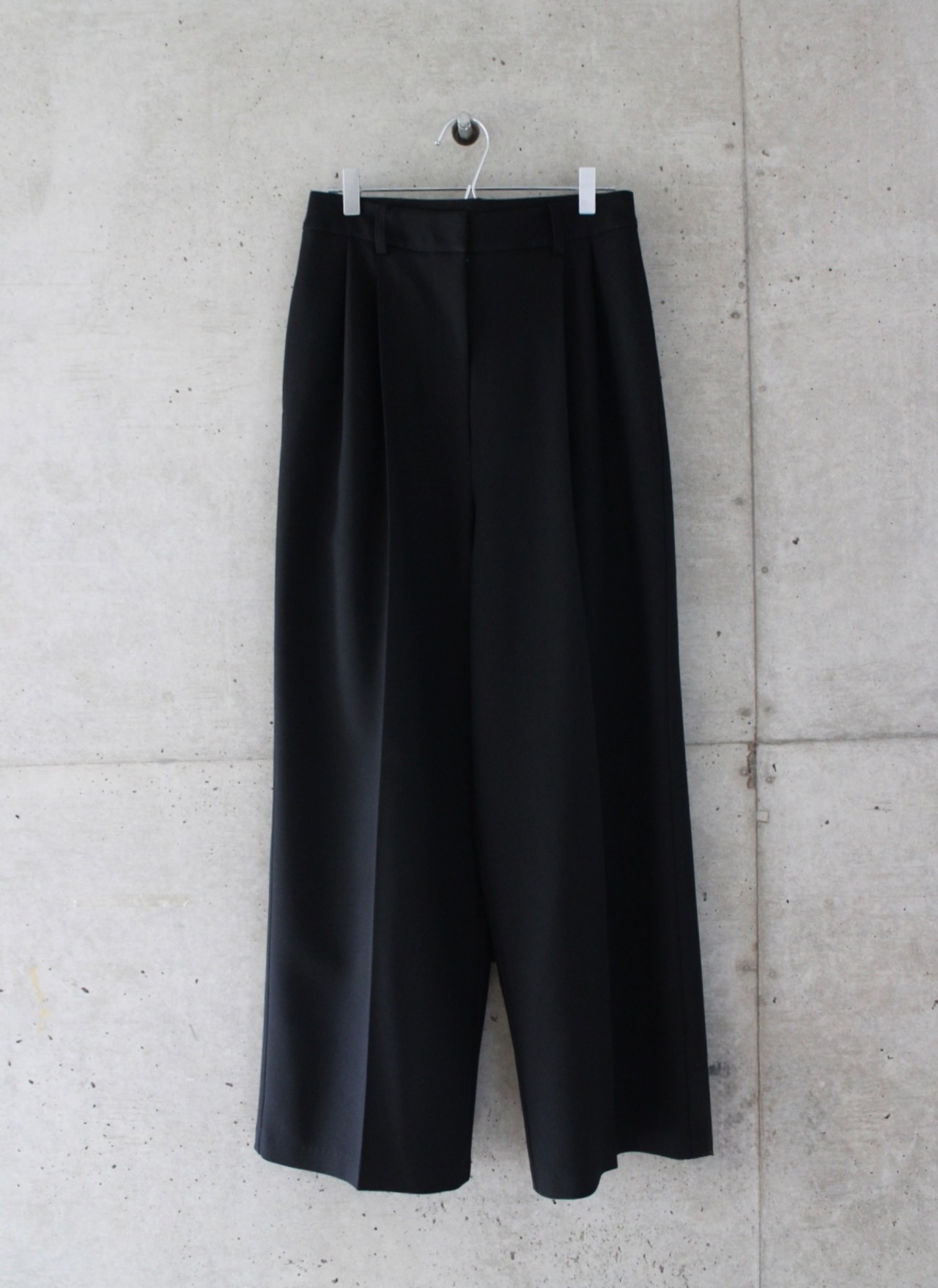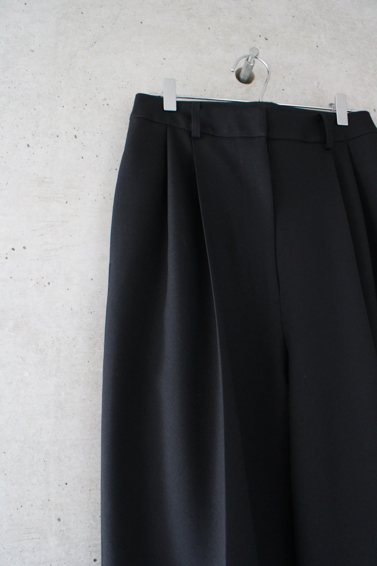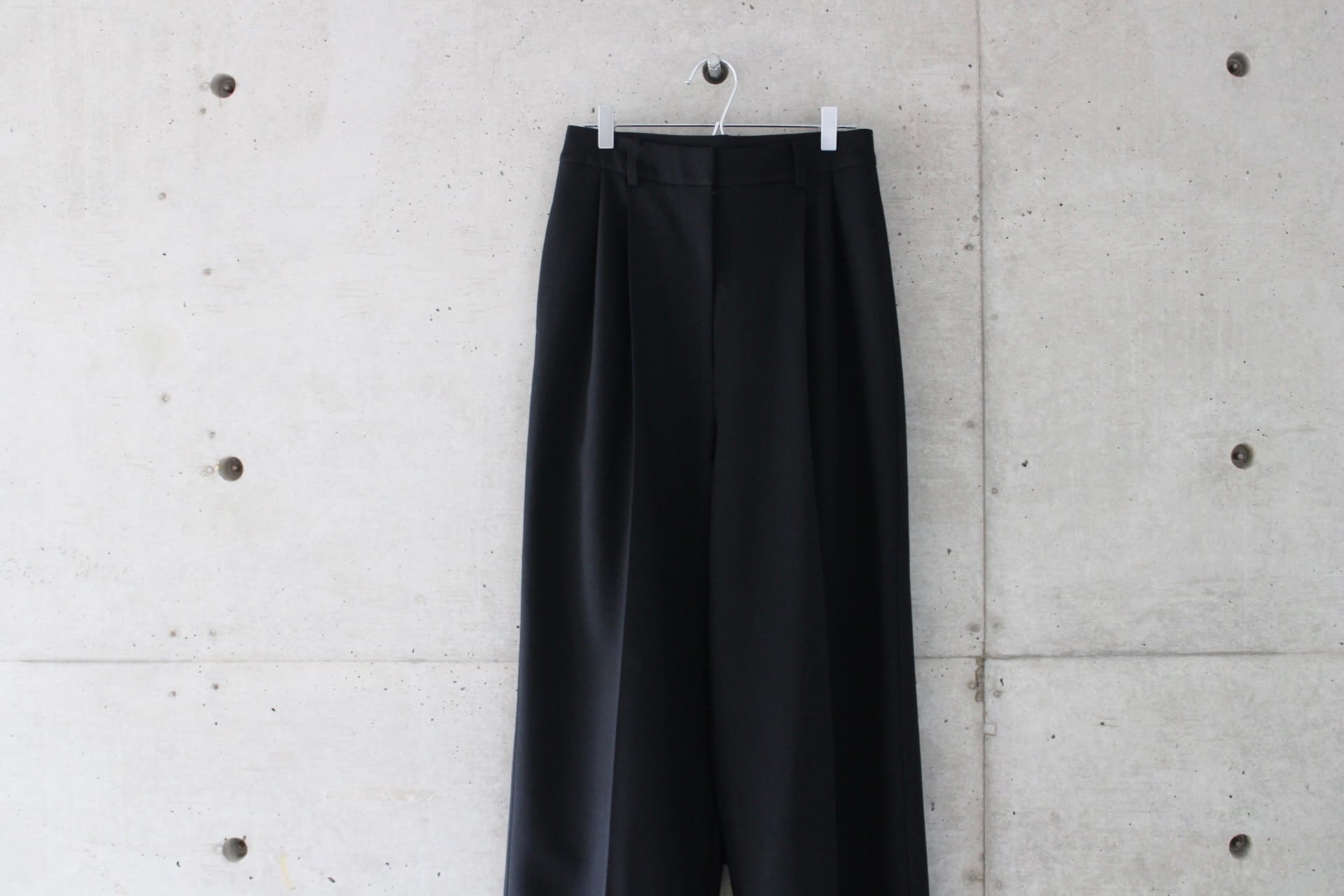 フロントに深めのタックを施しボリュームを持たせつつも、ハイウエスト位置で絞ることで女性らしさを感じるバランスにしております。