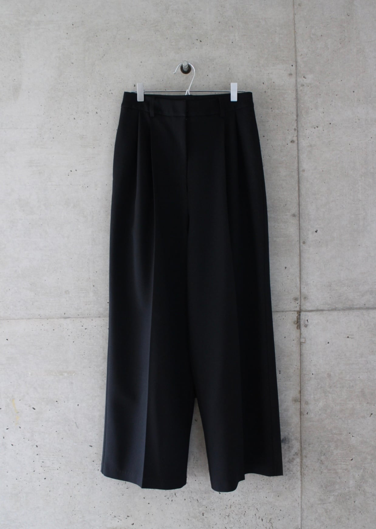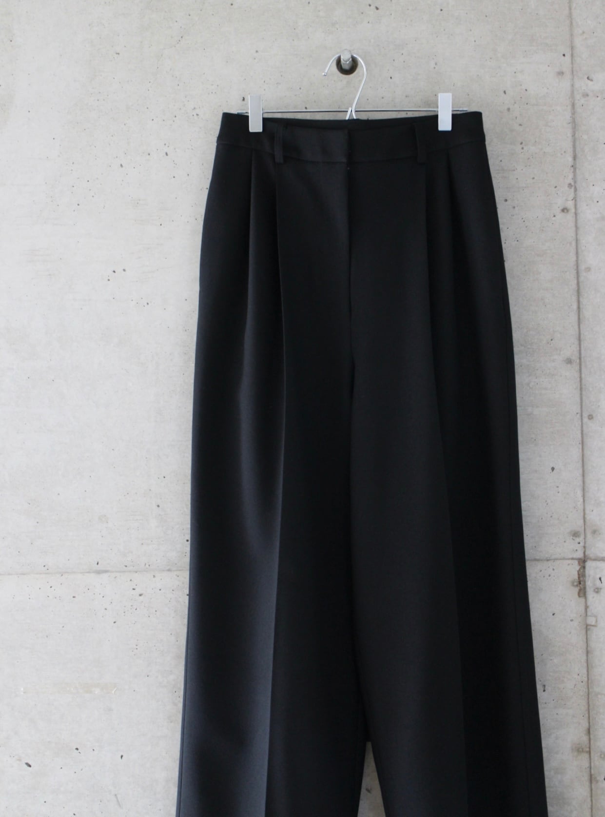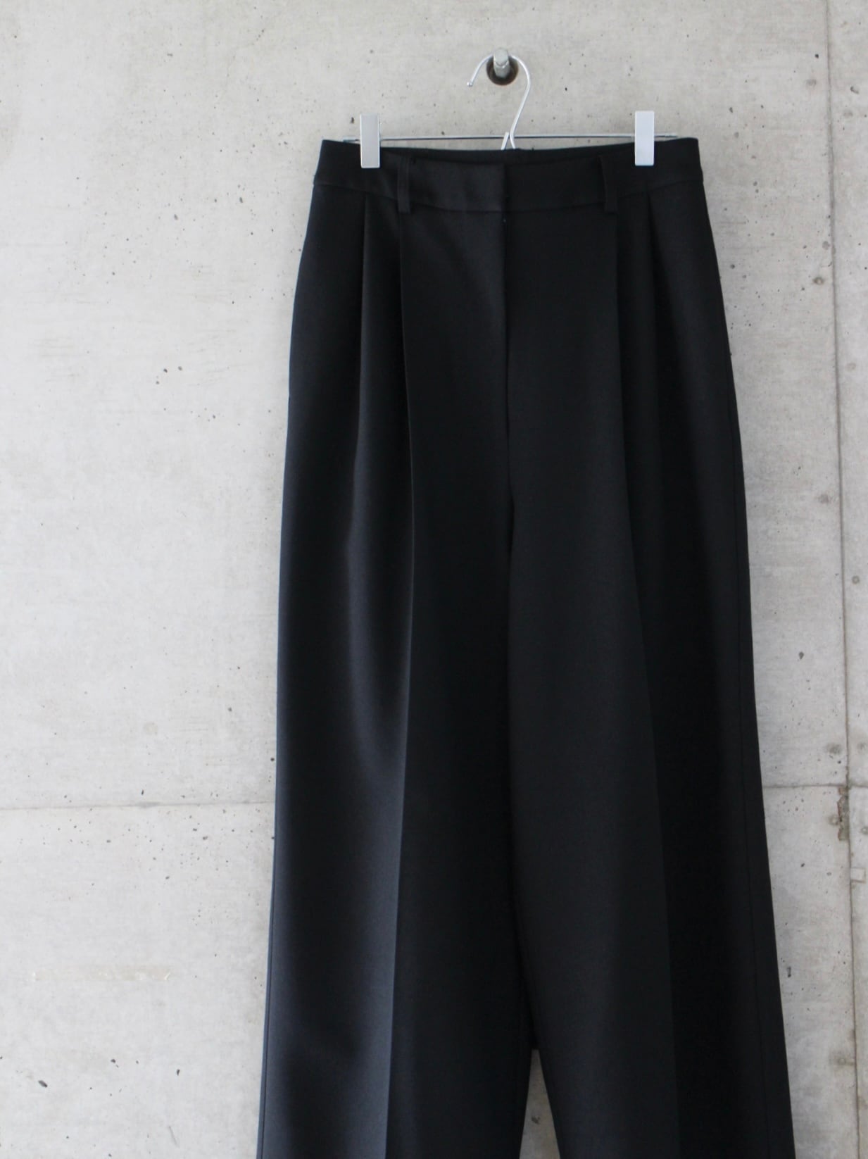 フロントに深めのタックを施しボリュームを持たせつつも、ハイウエスト位置で絞ることで女性らしさを感じるバランスにしております。