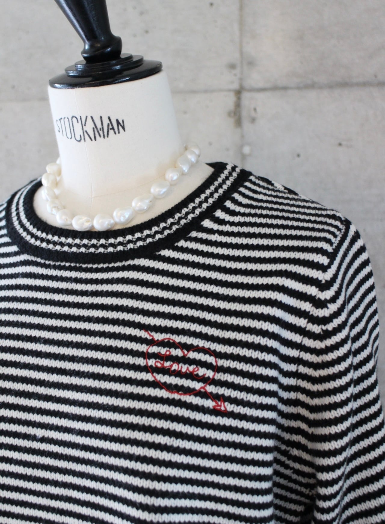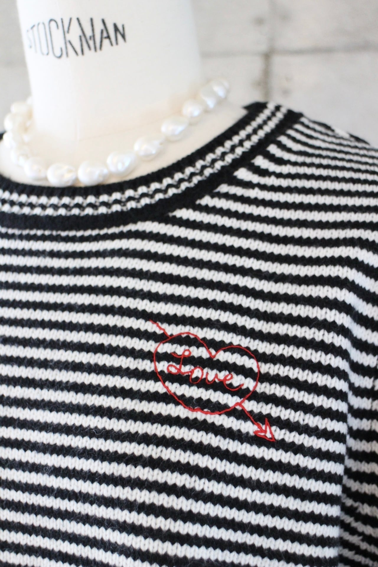 ポイントの手書きのハートに矢が刺さった刺繍は