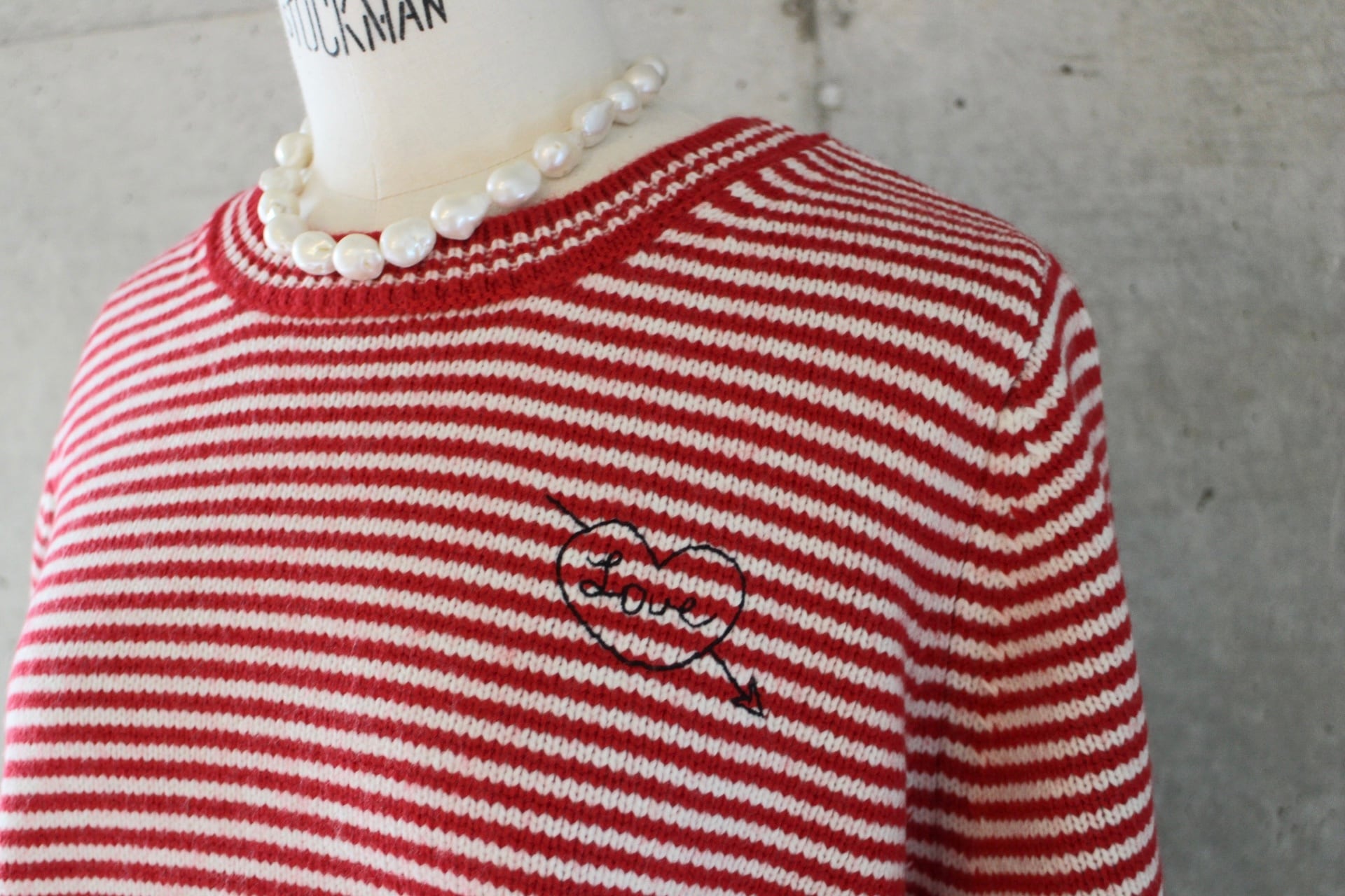 ポイントの手書きのハートに矢が刺さった刺繍は