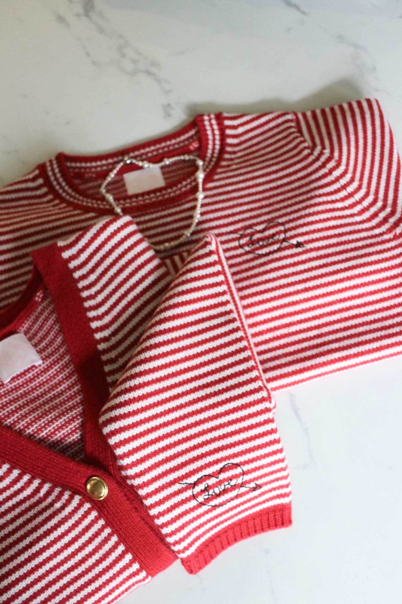 プルオーバーは胸元に、カーディガンはお袖に入っています
