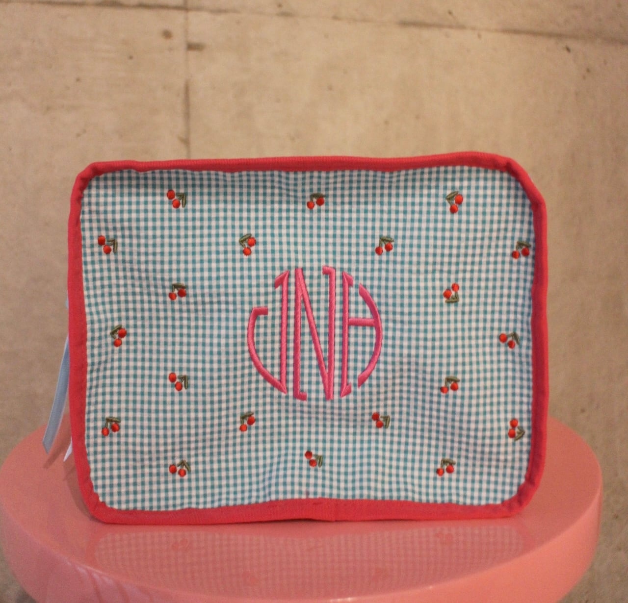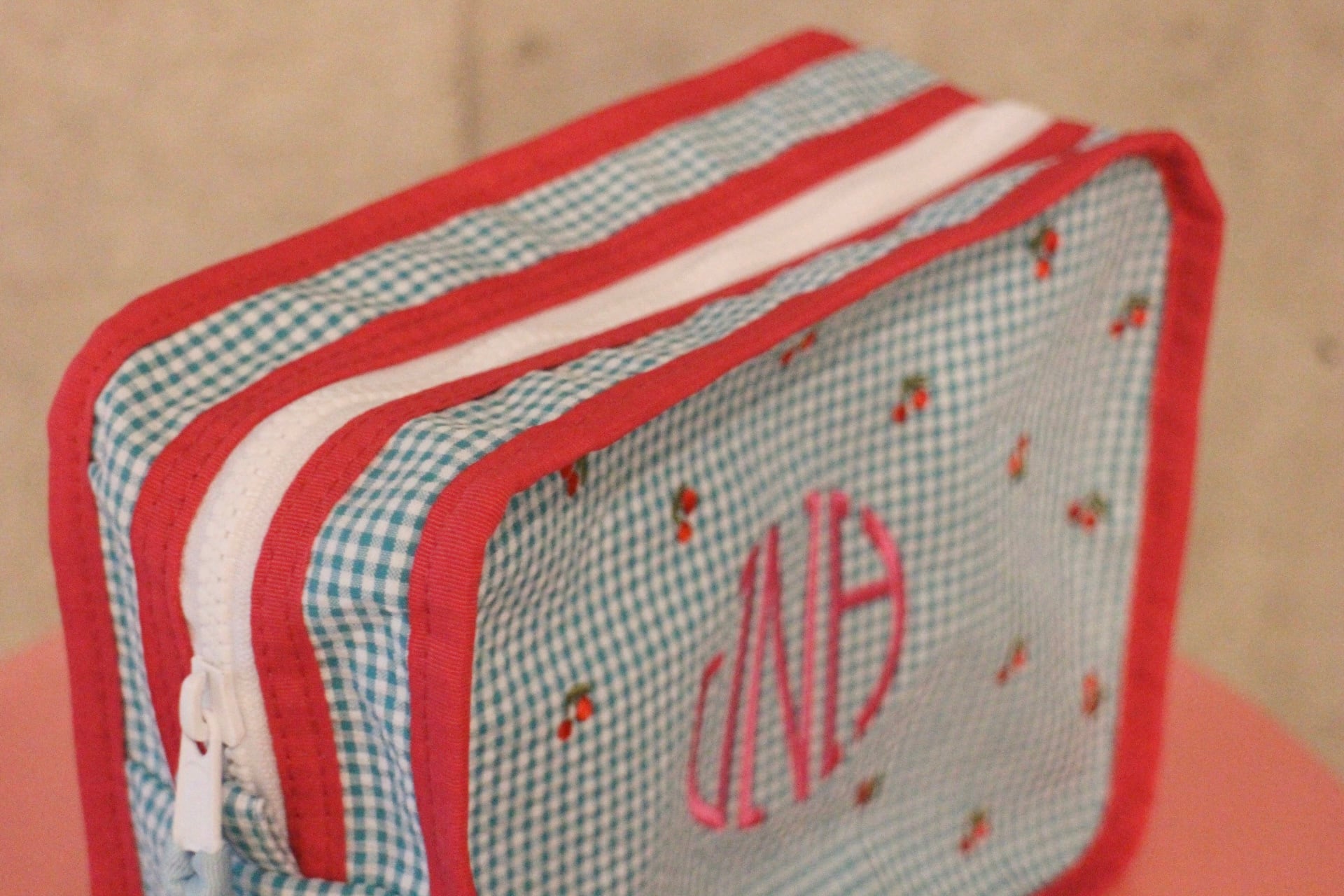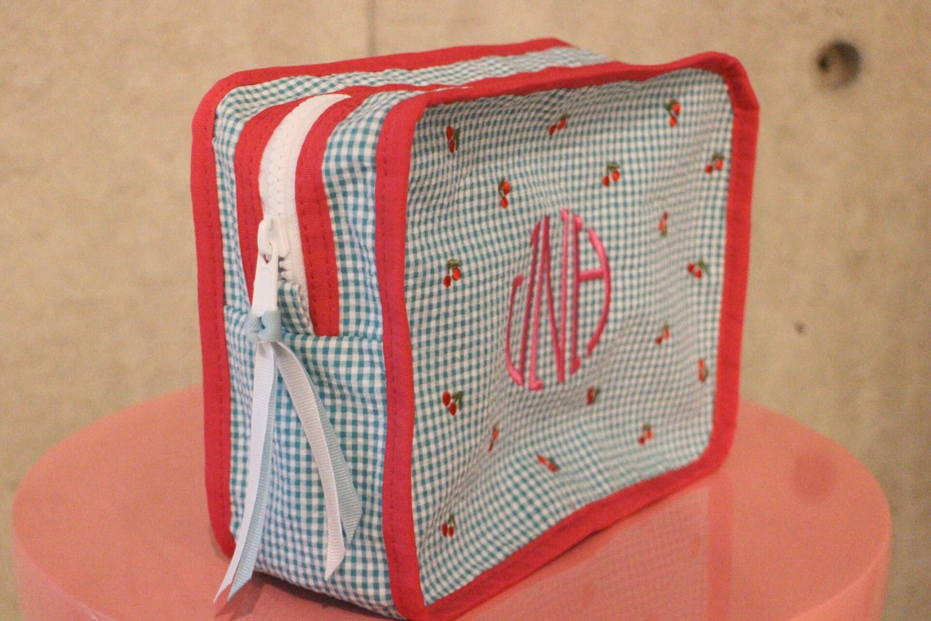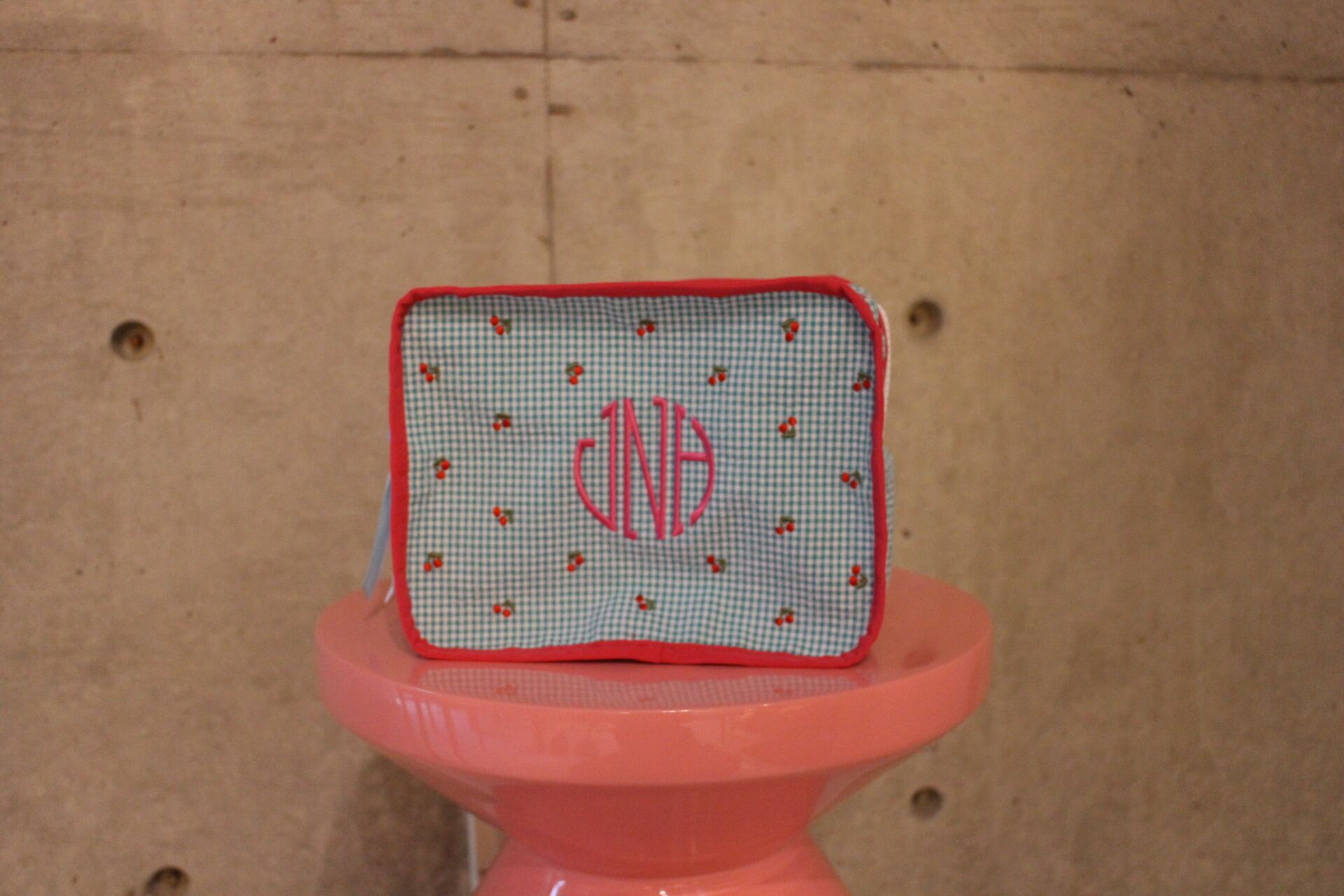コットン100%のギンガムチェック生地で出来たポーチ