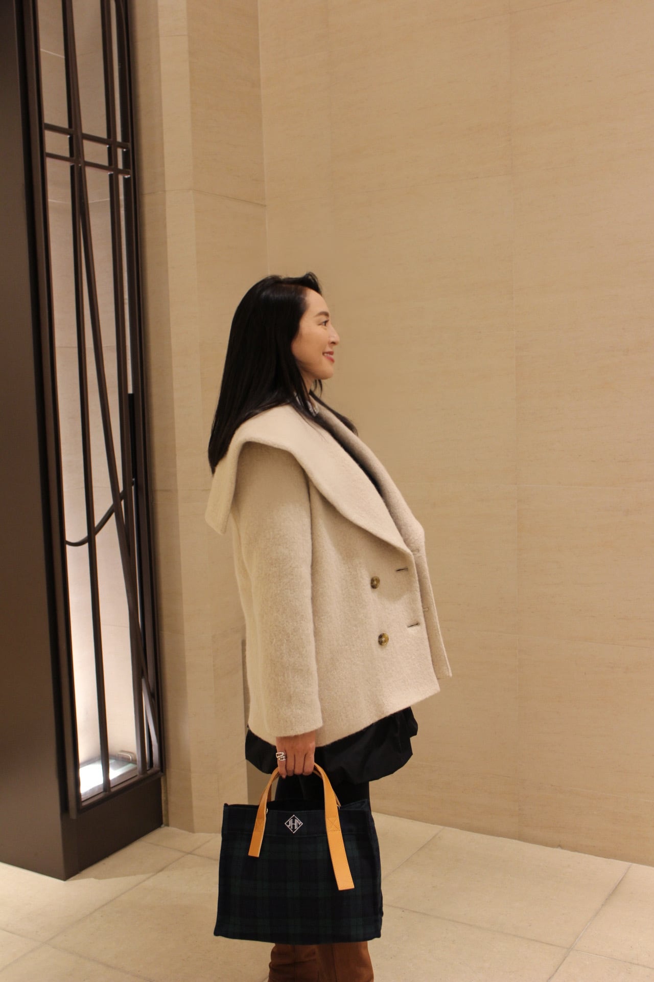 ・ウール 68%、ナイロン 15%、モヘア 10%、アクリル 7%(裏地:ポリエステル 100%)