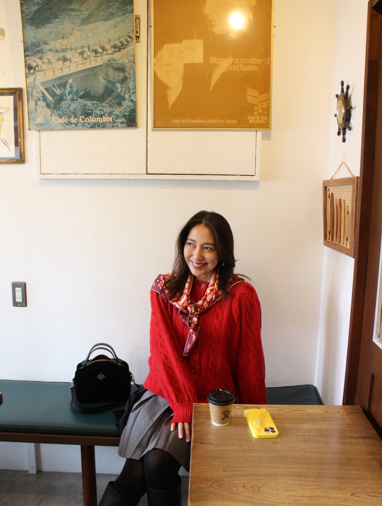 スカーフを合わせなくてもBasicなknit cardiganとしても重宝できます