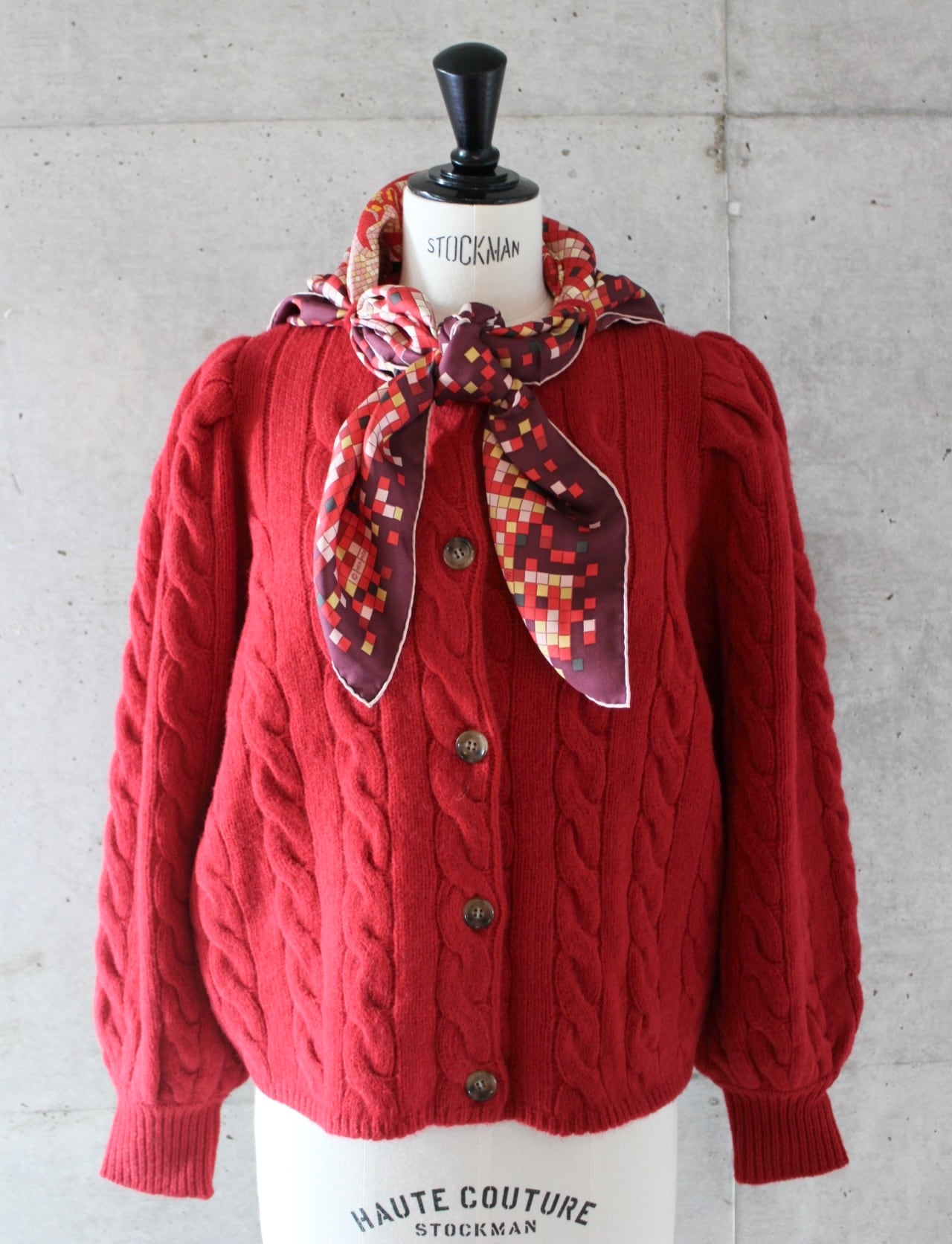 温かみのある柔らかい素材で編み上げた厚みのあるCable knit cardigan