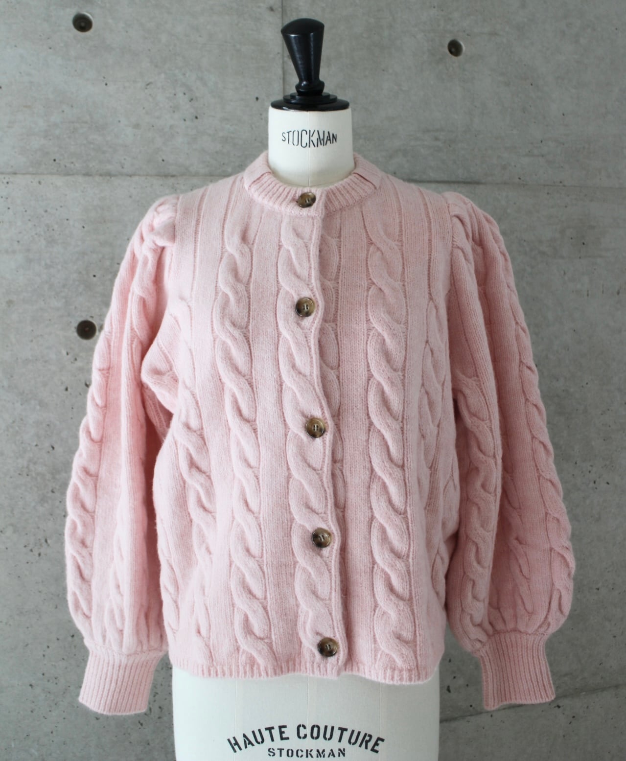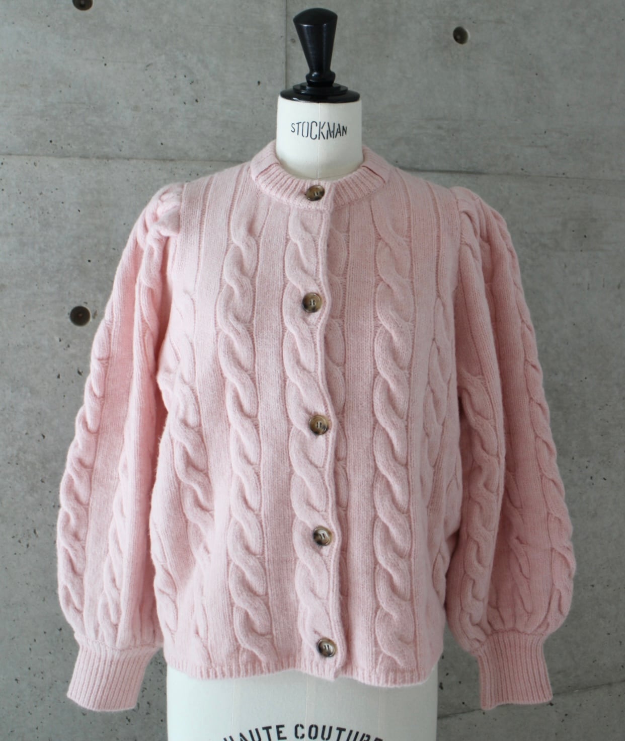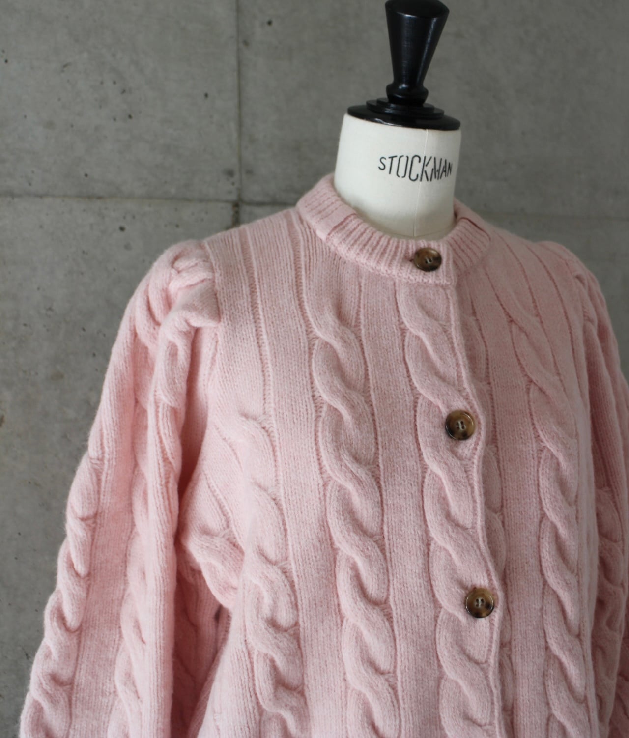 温かみのある柔らかい素材で編み上げた厚みのあるCable knit cardigan