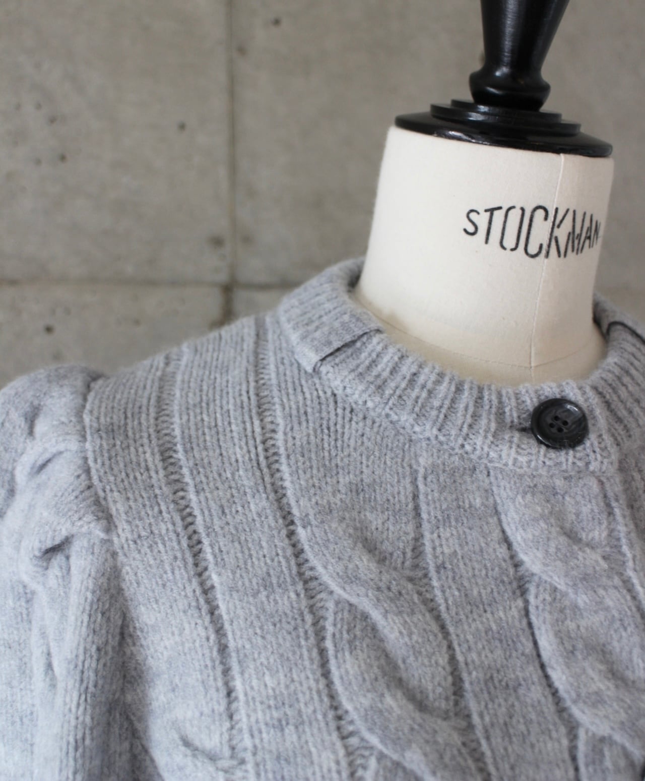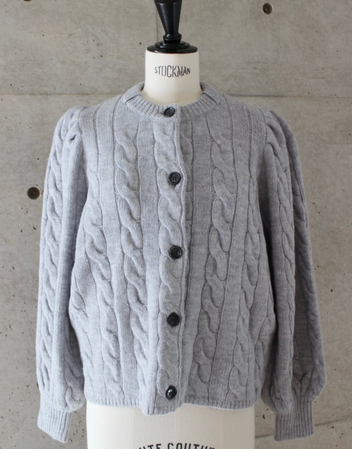温かみのある柔らかい素材で編み上げた厚みのあるCable knit cardigan