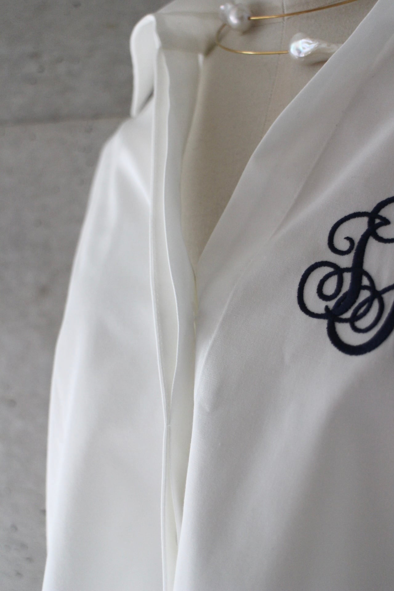 Aラインのデザインや胸元のブランドロゴの刺繍がポイントで