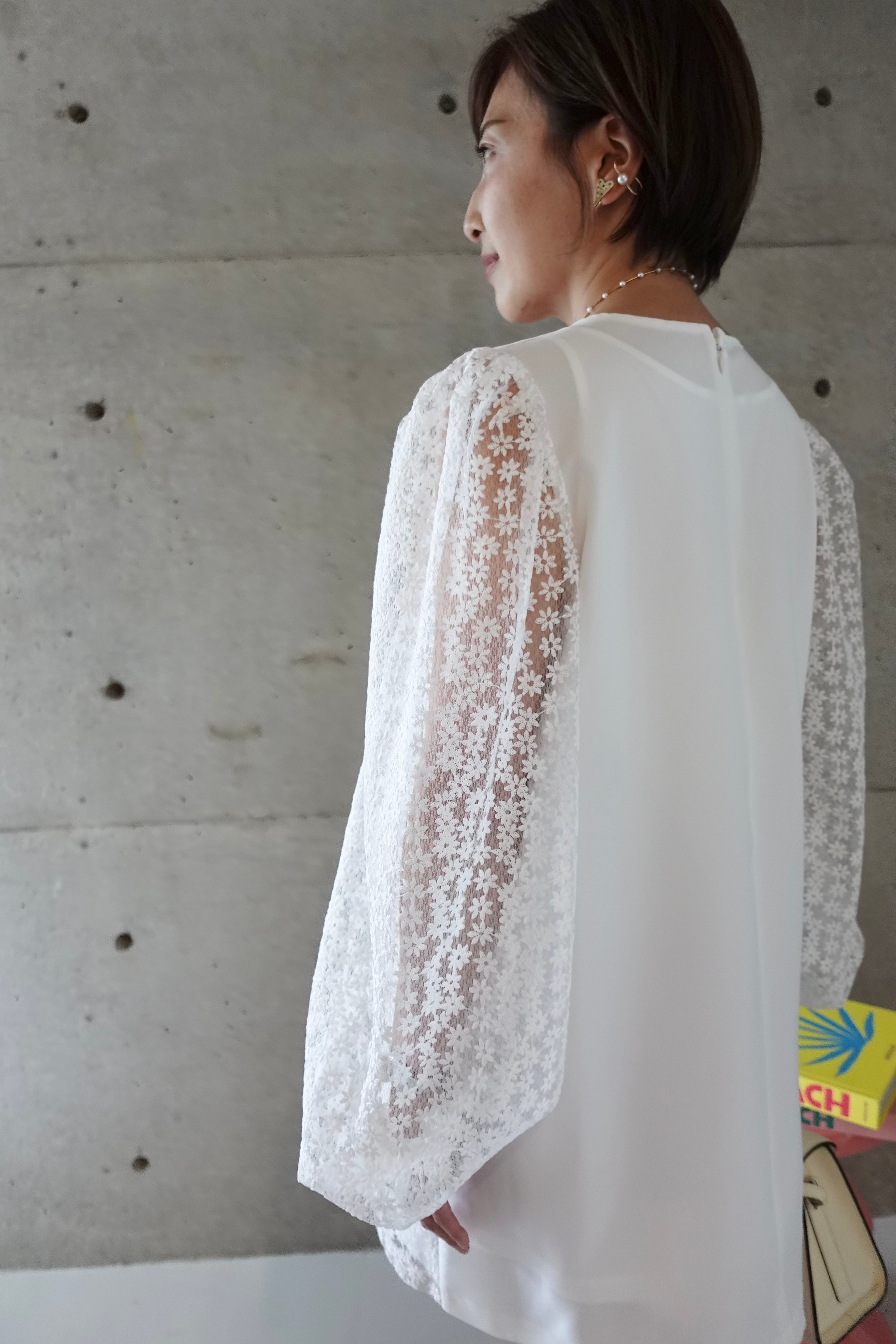 ほんのり透ける袖のシアー感が、動きに合わせて軽やかさとドラマティックな表情をプラス