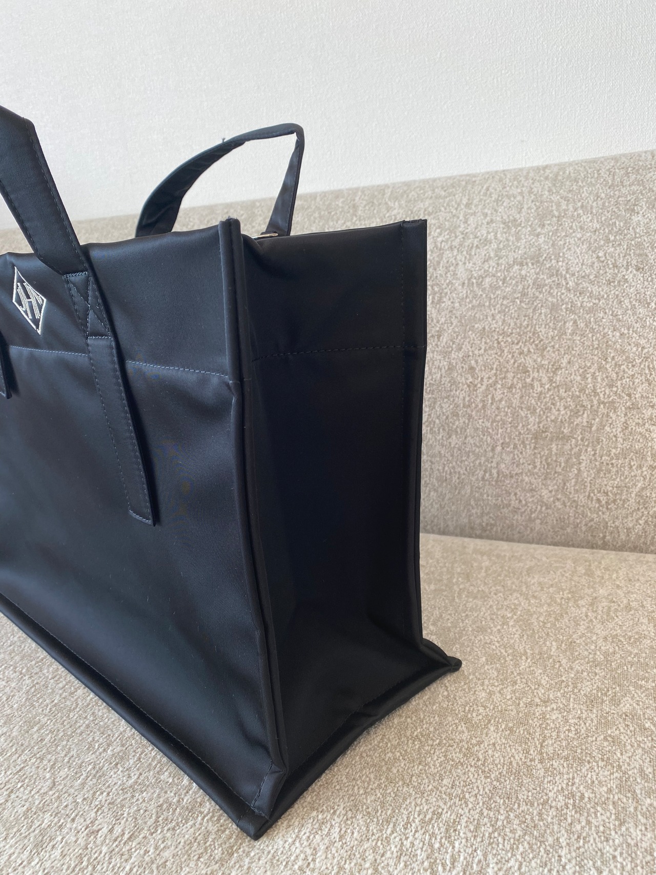 ナイロン素材は伸縮性が無いので、持ち手部分など製作の都合上シワになる場合があります。これは欠陥や縫製における不良品ではありませんので特徴としてお楽しみください。