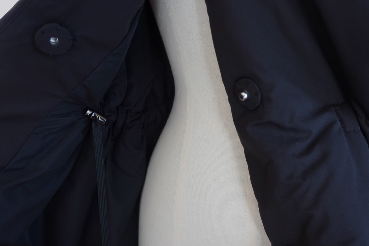"着脱可能な襟"、"ウエスト内側のドロストで絞る"ことができる機能性抜群の3WAYコートです
